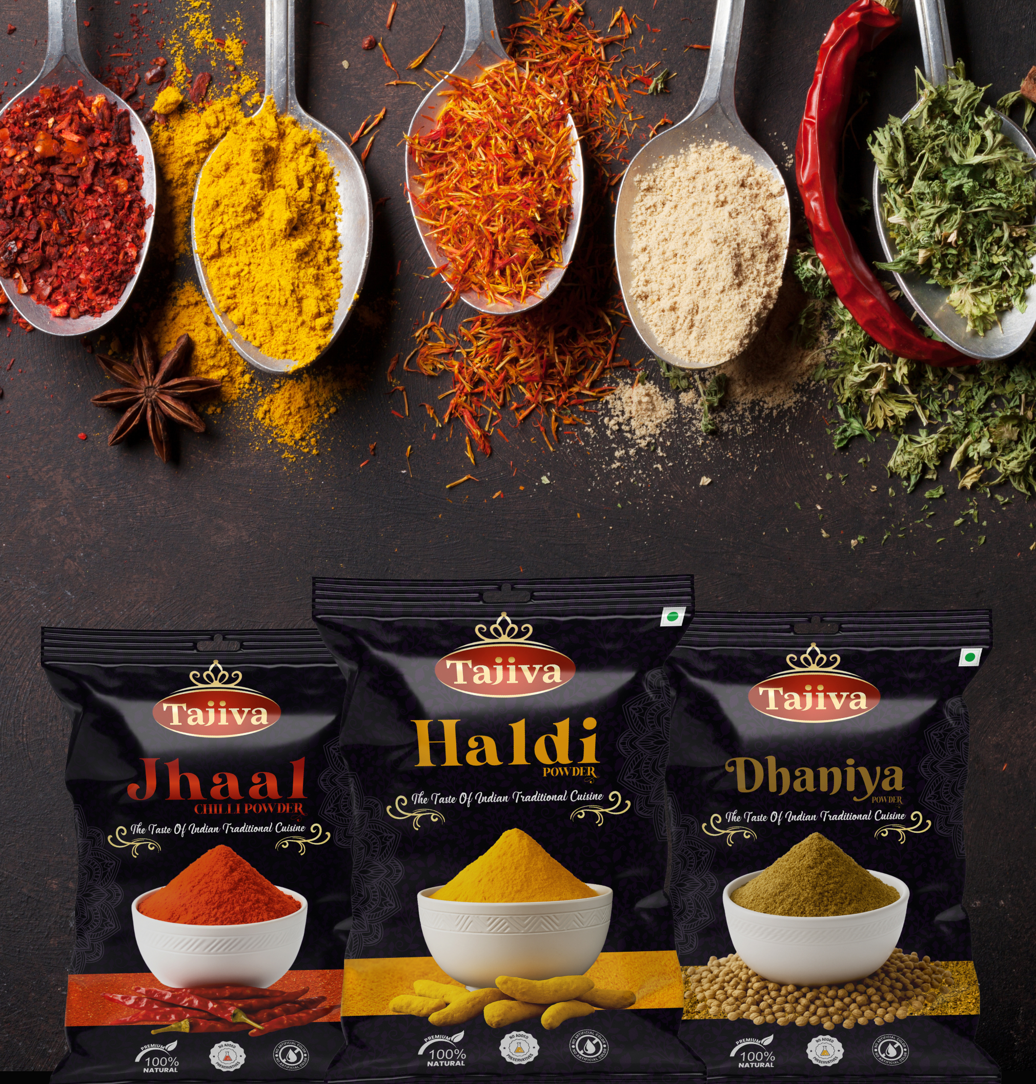 At Tajiva, we celebrate the rich heritage of Indian spices by bringing you the purest flavors straight from nature to your kitchen. Our range, including Jhaal Chilli Powder, Haldi Powder, and Dhaniya Powder, is crafted with utmost care to preserve authenticity and health benefits. Every pack of Tajiva is 100% natural, free from additives and preservatives, ensuring that your meals carry the true taste of Indian tradition. Rooted in the timeless spice culture of India yet processed with modern hygienic techniques, we promise unmatched freshness, aroma, and quality. Whether it’s the golden touch of turmeric, the fiery kick of chilli, or the earthy fragrance of coriander, Tajiva spices transform everyday cooking into a flavorful journey of tradition, health, and trust.