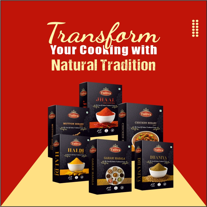 At Tajiva, we celebrate the rich heritage of Indian spices by bringing you the purest flavors straight from nature to your kitchen. Our range, including Jhaal Chilli Powder, Haldi Powder, and Dhaniya Powder, is crafted with utmost care to preserve authenticity and health benefits. Every pack of Tajiva is 100% natural, free from additives and preservatives, ensuring that your meals carry the true taste of Indian tradition. Rooted in the timeless spice culture of India yet processed with modern hygienic techniques, we promise unmatched freshness, aroma, and quality. Whether it’s the golden touch of turmeric, the fiery kick of chilli, or the earthy fragrance of coriander, Tajiva spices transform everyday cooking into a flavorful journey of tradition, health, and trust.